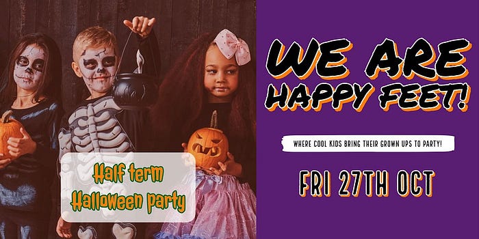 ‘We Are Happy Feet!’ is a day party experience for the whole family!!! Dust off your Halloween costumes (that includes the adults!) and join for a spooky Halloween themed party!